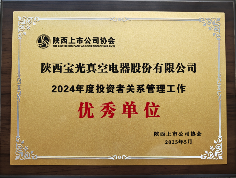 5月15日,陜西上市公司協(xié)會與陜西證券期貨業(yè)協(xié)會聯(lián)合發(fā)布2024年度評優(yōu)結(jié)果,寶光股份憑借在投資者關(guān)系管理領域的卓越實踐,榮獲“2024年度投資者關(guān)系管理工作優(yōu)秀單位”稱號,這是對公司長期以來重視投資者關(guān)系管理的高度認可。