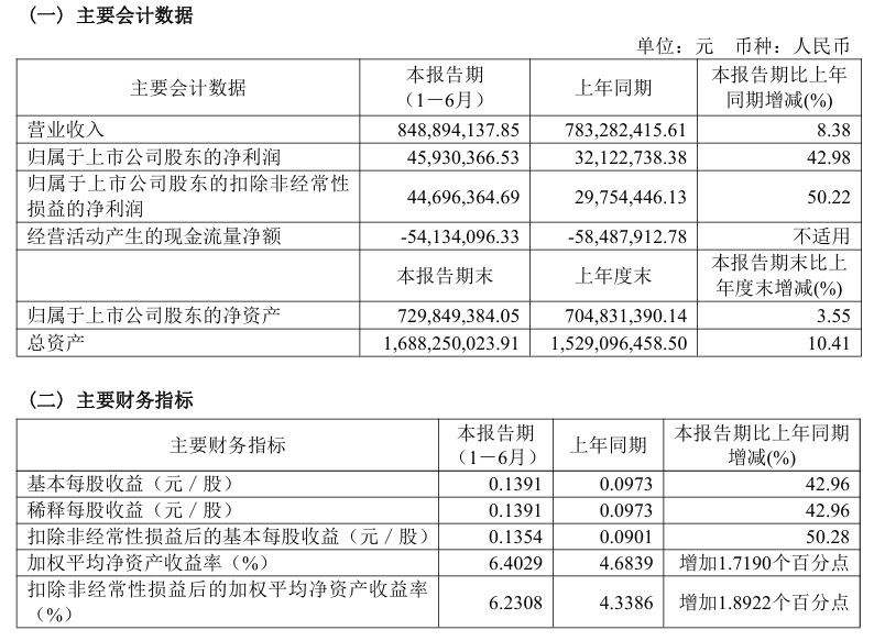 寶光股份2024年半年度主要財(cái)務(wù)指標(biāo)